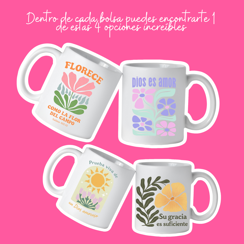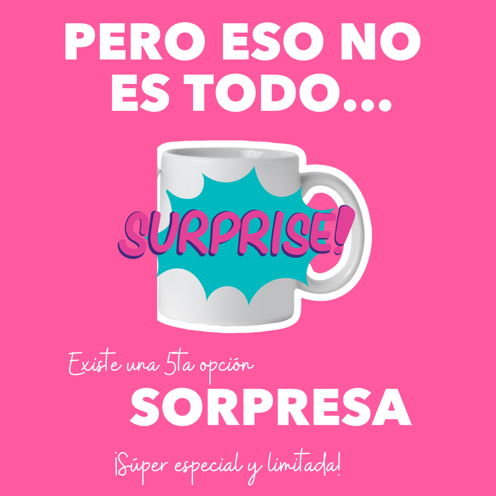 Una bolsa completamente sellada donde podrás encontrar una de estas 4 tazas o la sorpresa.